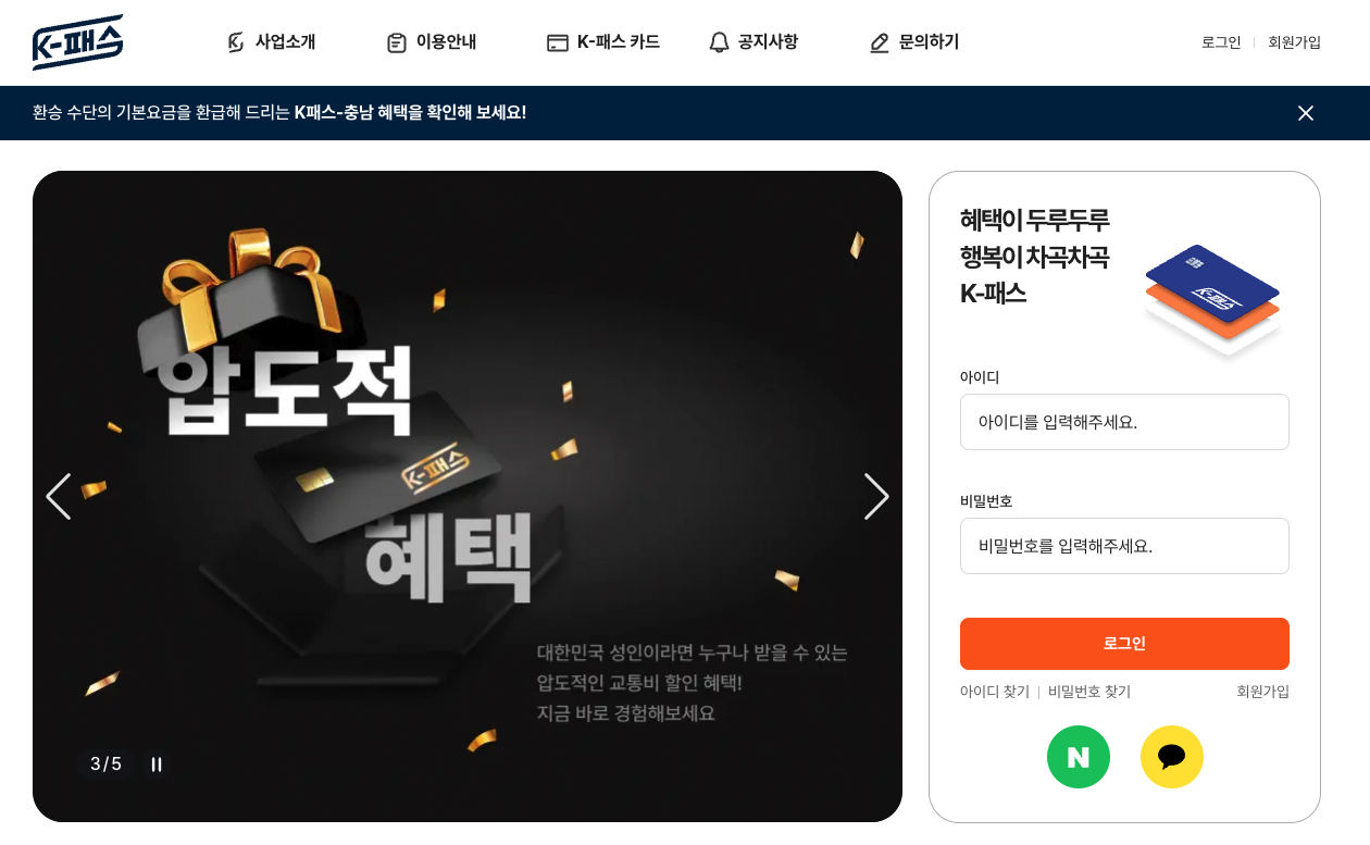 아래 버튼을 통해 K-패스 누리집(https://korea-pass.kr)에서 회원 가입을 해야 합니다.