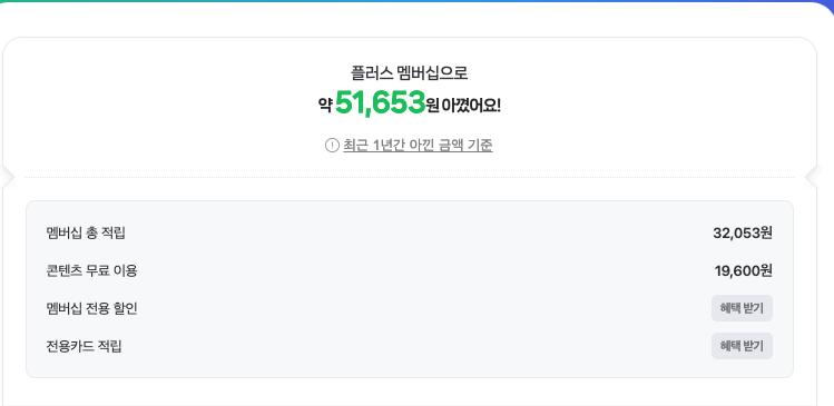 저는 플러스 멤버십 가입하고 무려 51,653원 아꼈답니다.