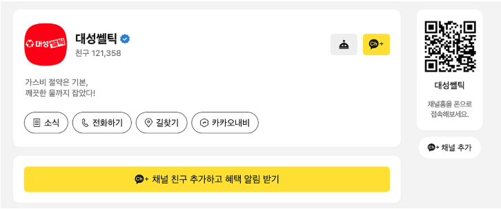 카카오톡에서 '대성셀틱'을 검색하여 채널을 추가한 뒤, A/S 신청을 할 수 있습니다.