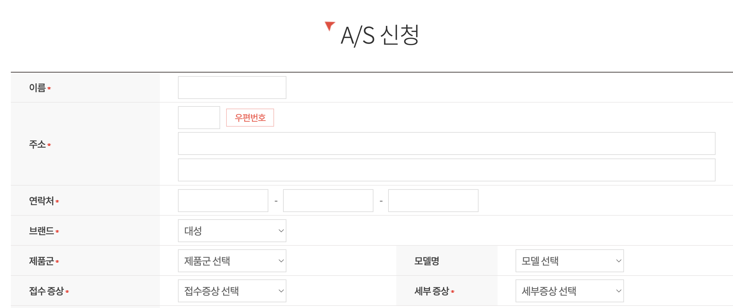 아래 버튼을 통해 대성셀틱의 공식 홈페이지에 접속해서 AS 접수 페이지로 이동하세요.