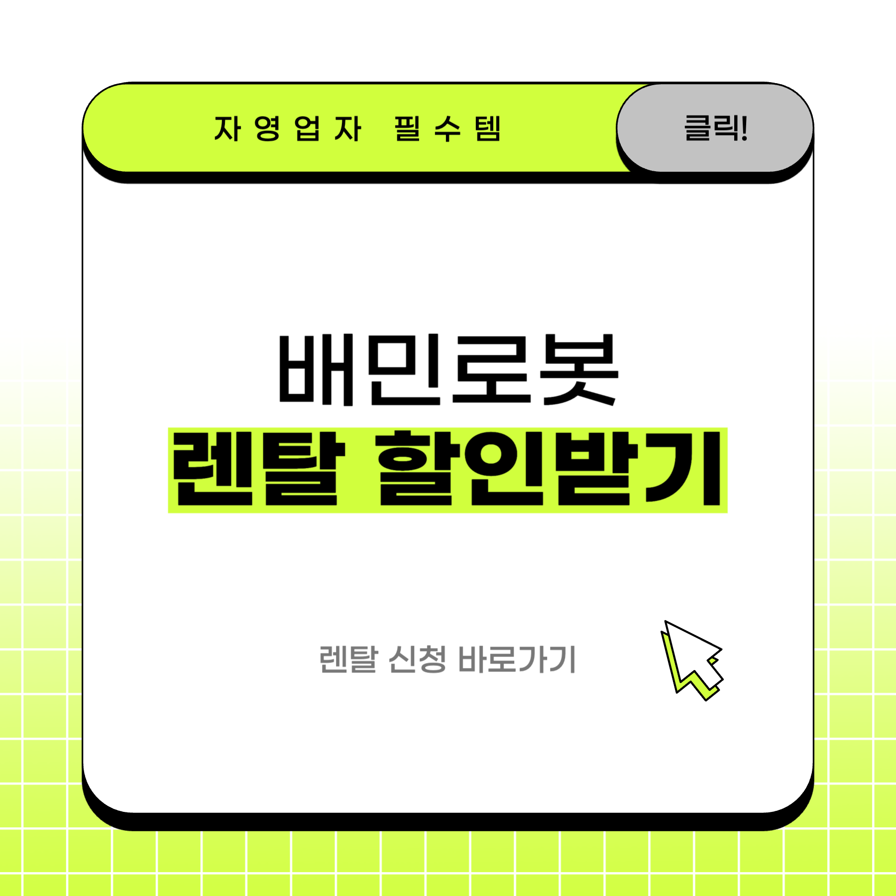 배민 서빙로봇 렌탈 덕분에 매출이 2배나 늘었습니다! 렌탈 할인 혜택 끝나기 전에 아래 버튼을 통해 지금 바로 신청하세요.