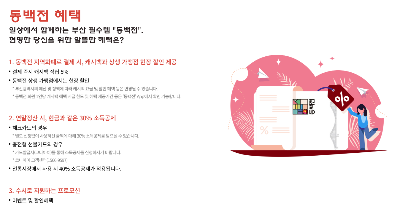 적립된 포인트는 지역 상점에서 사용 가능: 적립한 마일리지는 동백전 가맹점에서 현금처럼 사용할 수 있습니다.