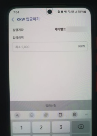 그럼 연동된 케이뱅크 계좌가 나오는데, 이 계좌로 원화를 입금해요.