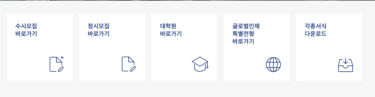 - 입학 전형 안내: 수시, 정시, 특별 전형 등 다양한 입학 전형에 대한 세부 정보를 제공합니다. 각각의 전형별 지원 자격, 일정, 요구 서류 등을 확인할 수 있습니다.