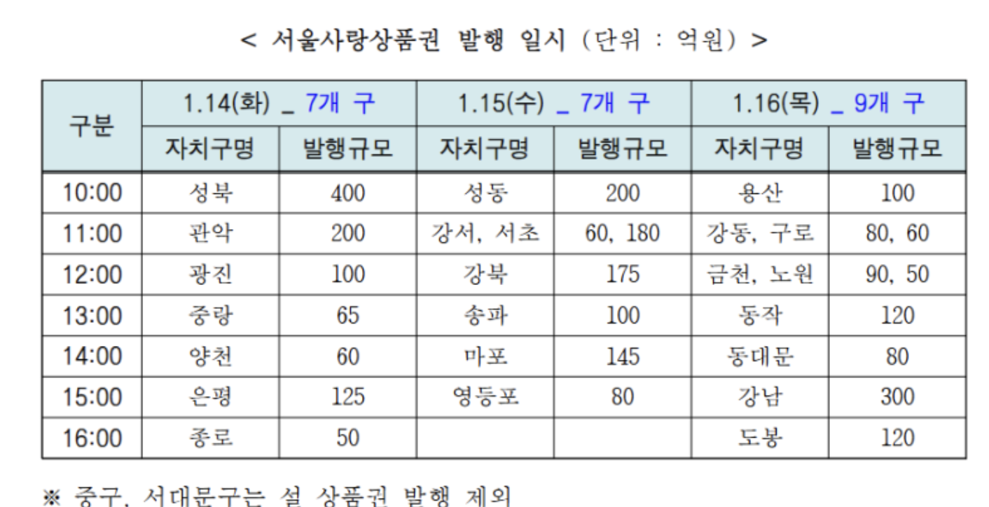 자치구별 발행 일정은 아래 표를 참고하세요 .