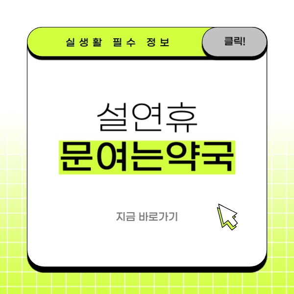 설날 연휴, 문 여는 약국 정보를 미리 확인해보세요. 갑작스러운 상황에도 대비할 수 있는 필수 정보만 정리해 드립니다.