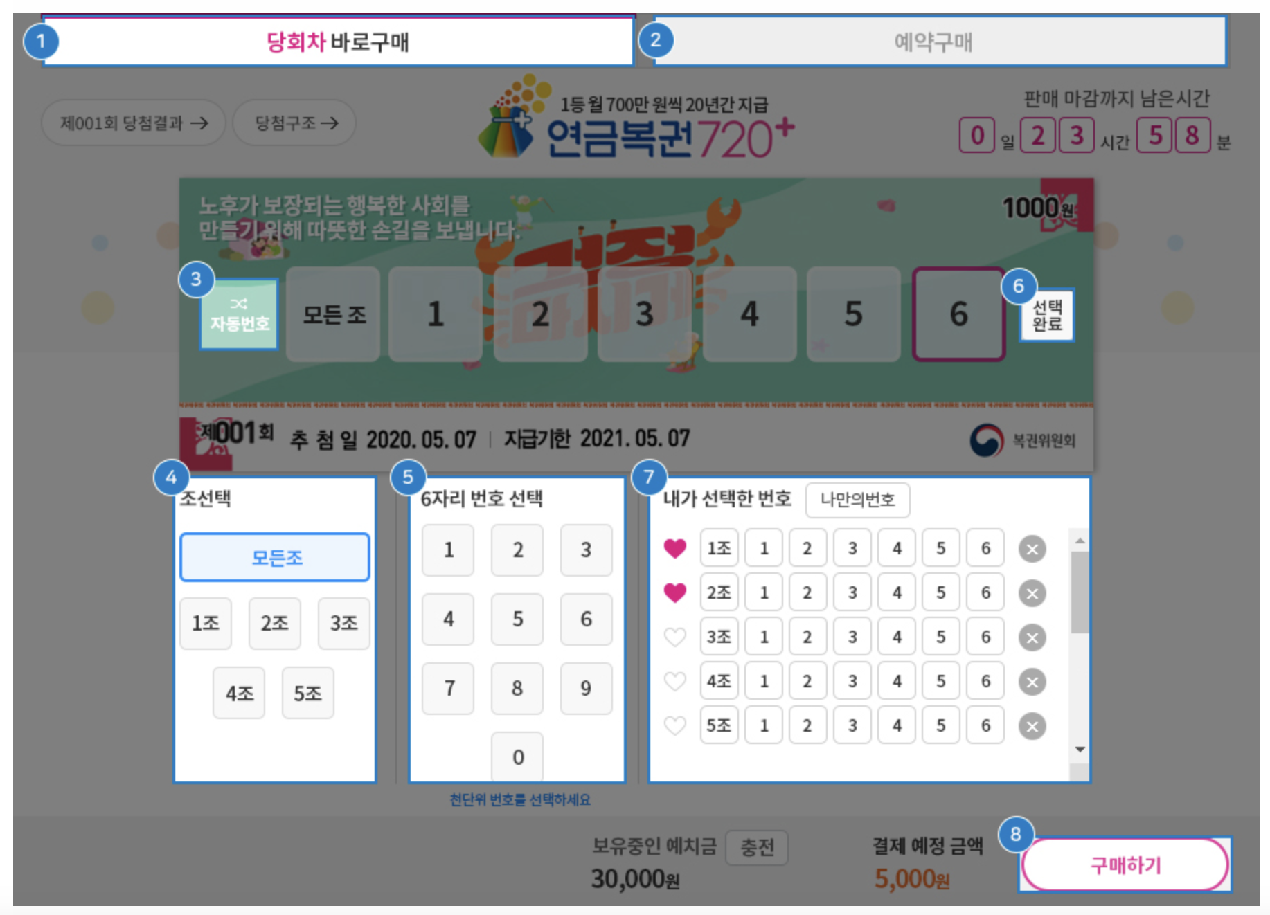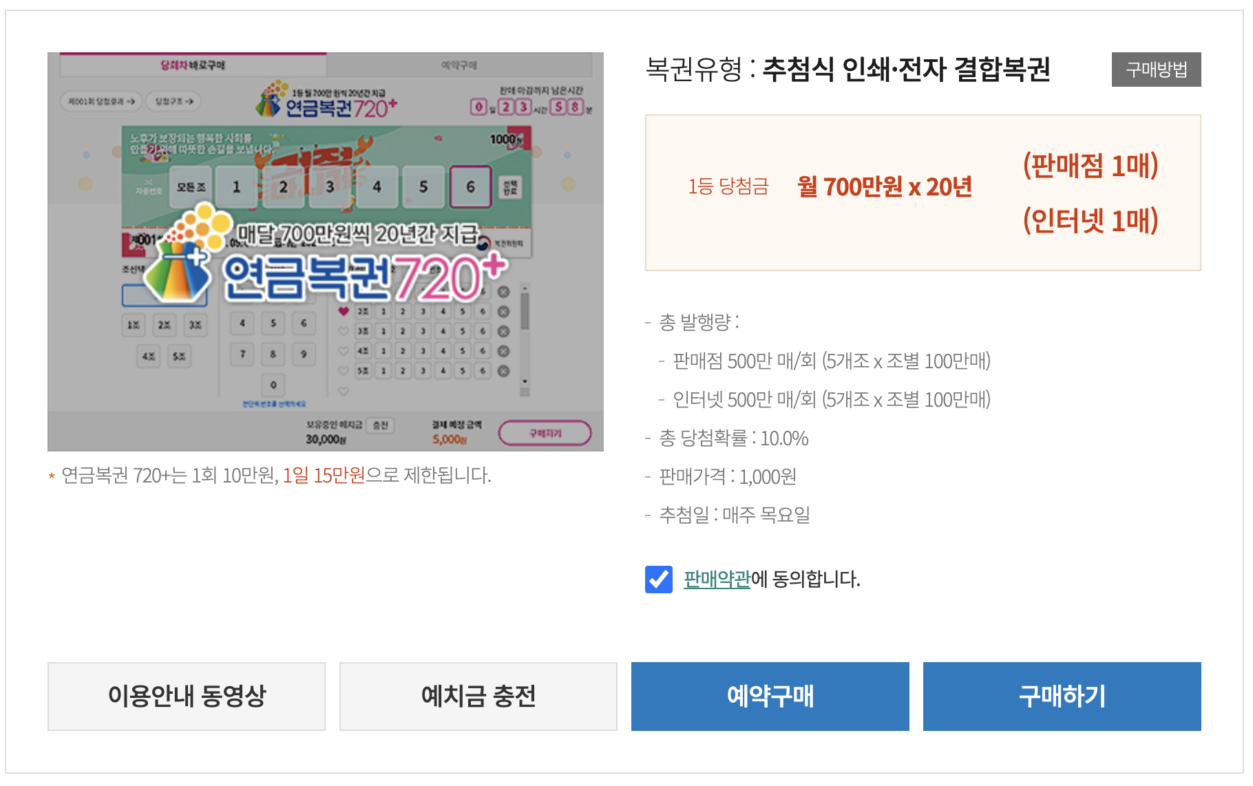 Q. 연금복권720 홈페이지에서 복권 구매는 어떻게 하나요?