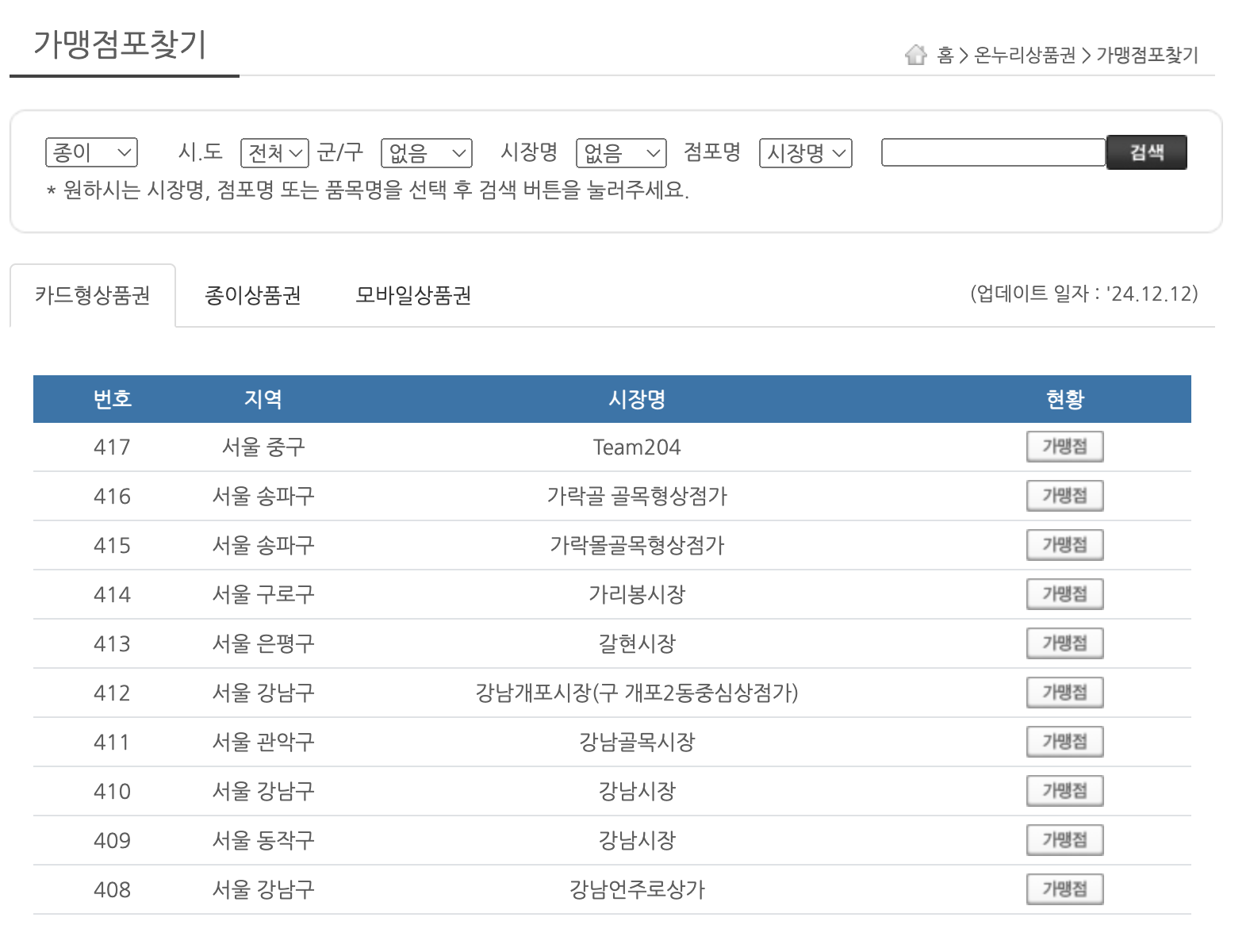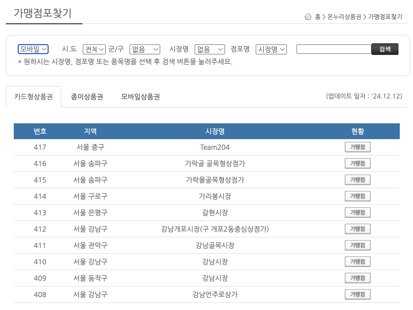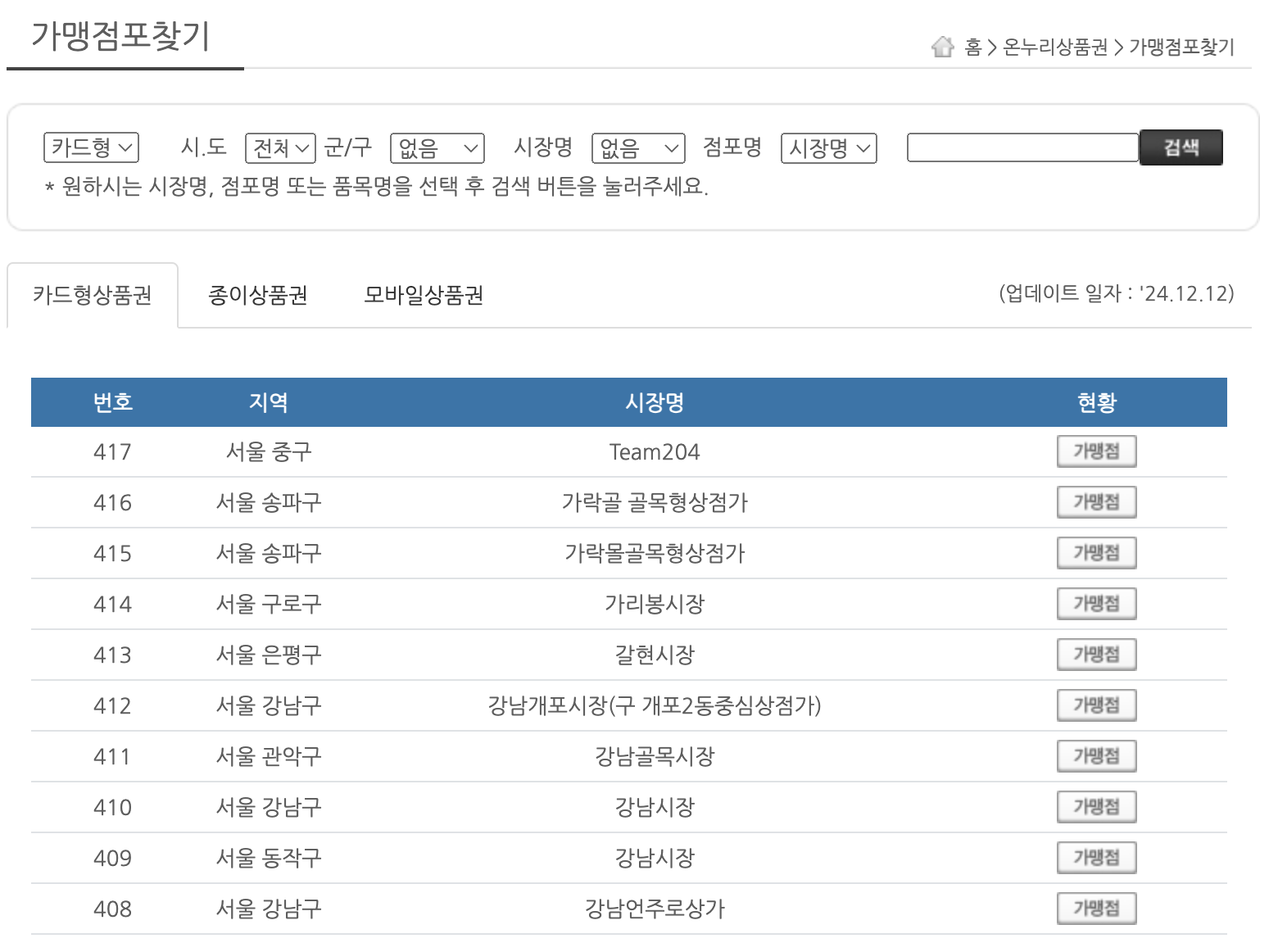 온누리상품권 앱에서 바로 가맹점 찾기 가능합니다.