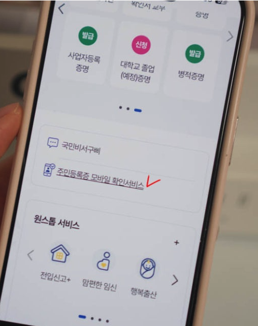 3. ‘주민등록증 모바일 확인서비스’ 메뉴 찾기