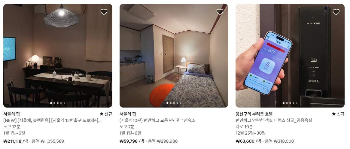 에어비앤비에서는 공간마다 사진과 리뷰를 제공하여, 예약 전에 실제 사용자들의 평가를 확인할 수 있어 믿고 예약할 수 있습니다.