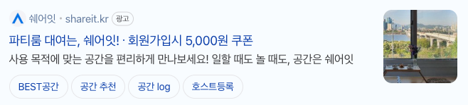 ✅ 가격 비교: 쉐어잇과 에어비앤비에서 제공하는 다양한 가격대의 파티룸을 비교하여, 예산에 맞는 공간을 선택하세요.