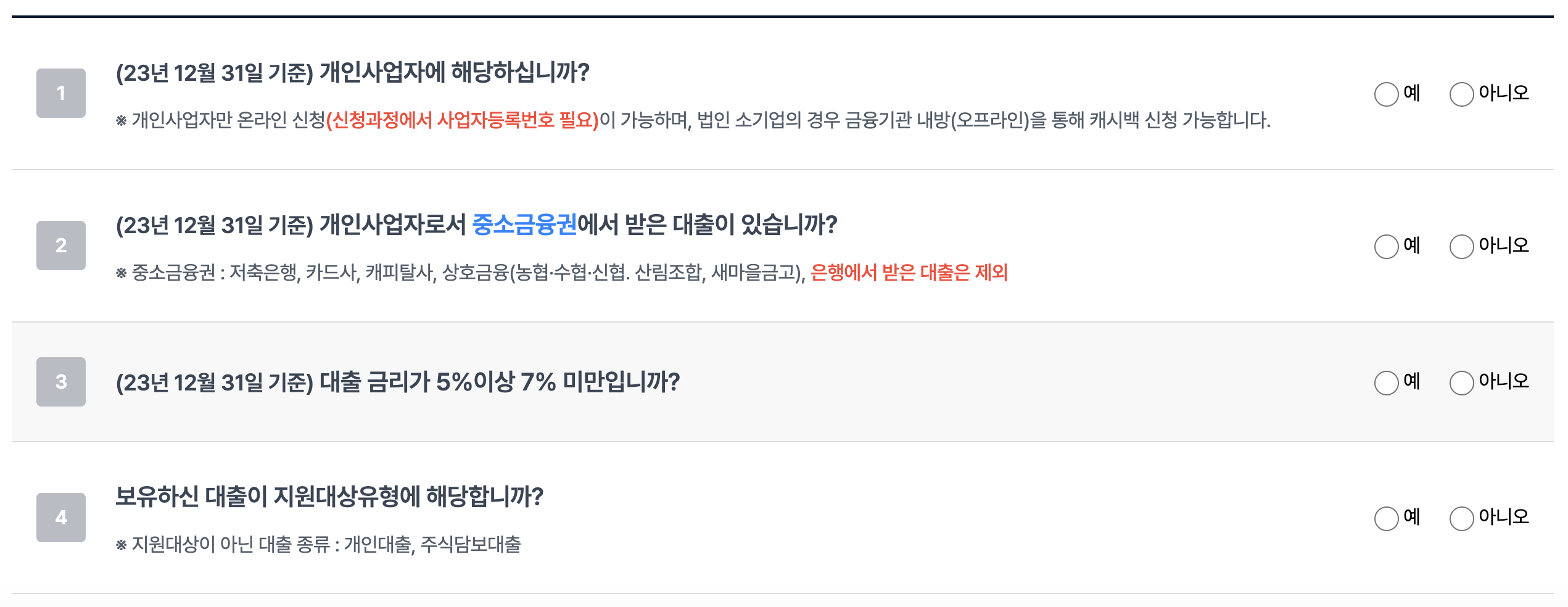 저는 저축은행과 농협 등에서 대출을 받은 소상공인이라 신청할 수 있었죠.