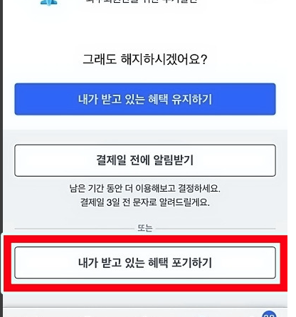 5. 혜택 포기하기: 해지 시 어떤 혜택이 사라지는지 안내가 나오는데, 확인 후 '내가 받고 있는 혜택 포기하기'를 선택했어요.