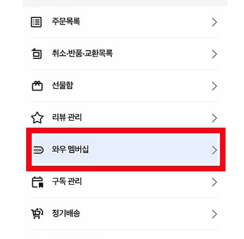 3. 와우 멤버십 선택: 프로필 페이지에서 '와우 멤버십' 항목을 찾았어요.