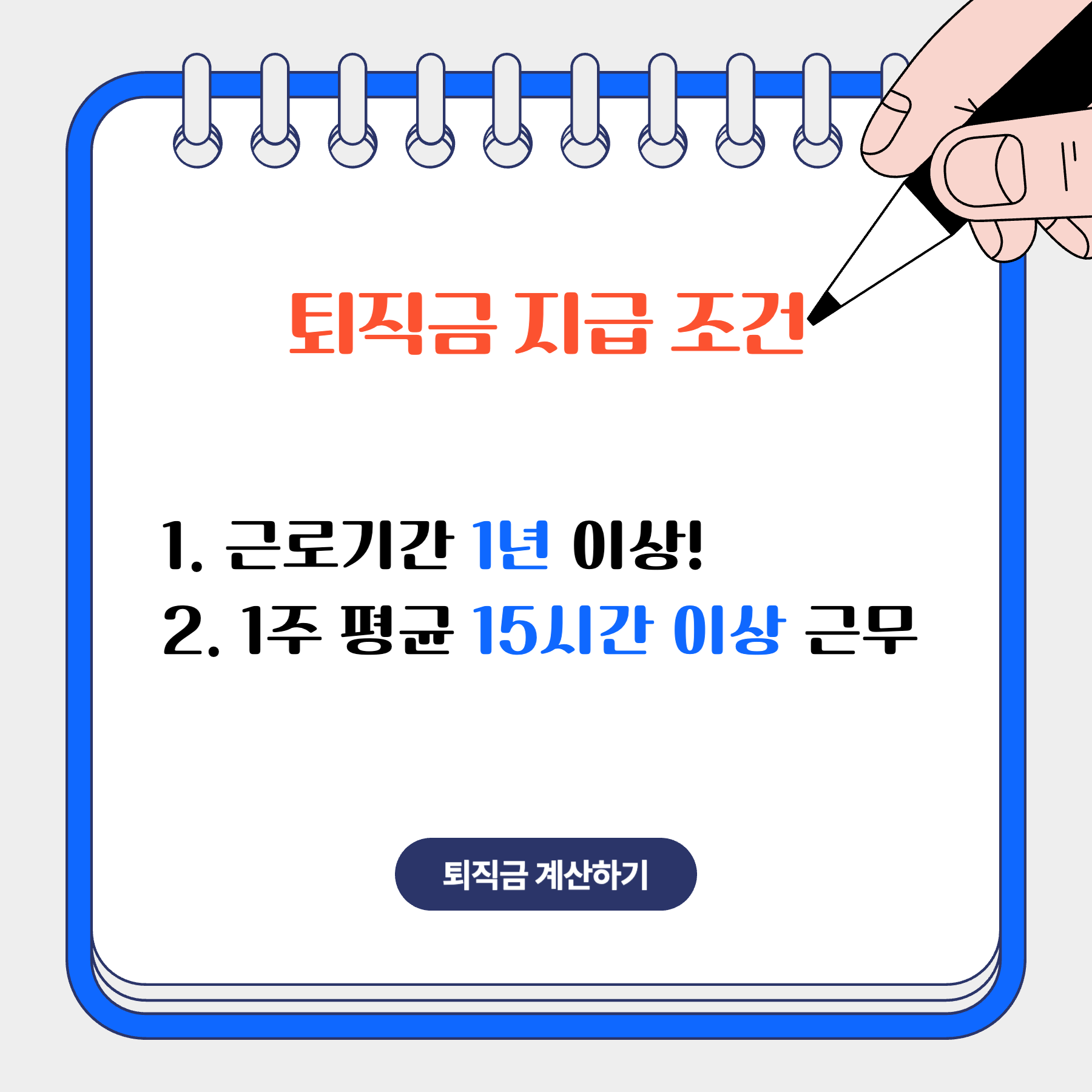 이 두 가지 조건을 만족하면, 정규직, 비정규직, 프리랜서, 4대보험 미가입자 등 관계없이 퇴직금을 받을 수 있습니다.