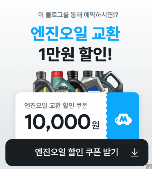 위의 할인쿠폰까지 적용하면 엔진오일, 필터, 공임까지 포함해 저렴하게 이용가능하니 꼭 발급 받으세요.