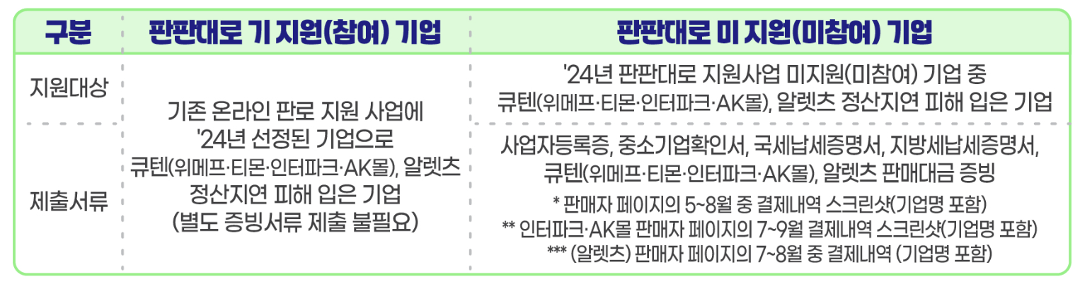 이 사업은 큐텐과 알렛츠의 정산 지연으로 피해를 입은 소상공인들이 새로운 판로를 개척할 수 있도록 지원하는 프로그램입니다.