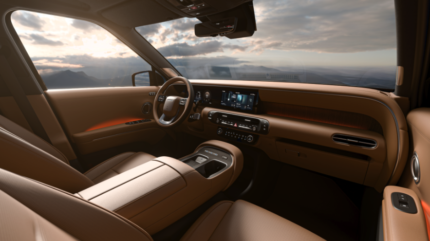 현대차는 신형 팰리세이드의 실내를 고급스러운 주거공간을 테마로 디자인했습니다. 실내 공간은 넓어졌으며, 가구 디자인에서 영감을 받은 수평적 레이아웃이 채택되어 편안한 분위기를 자아냅니다.