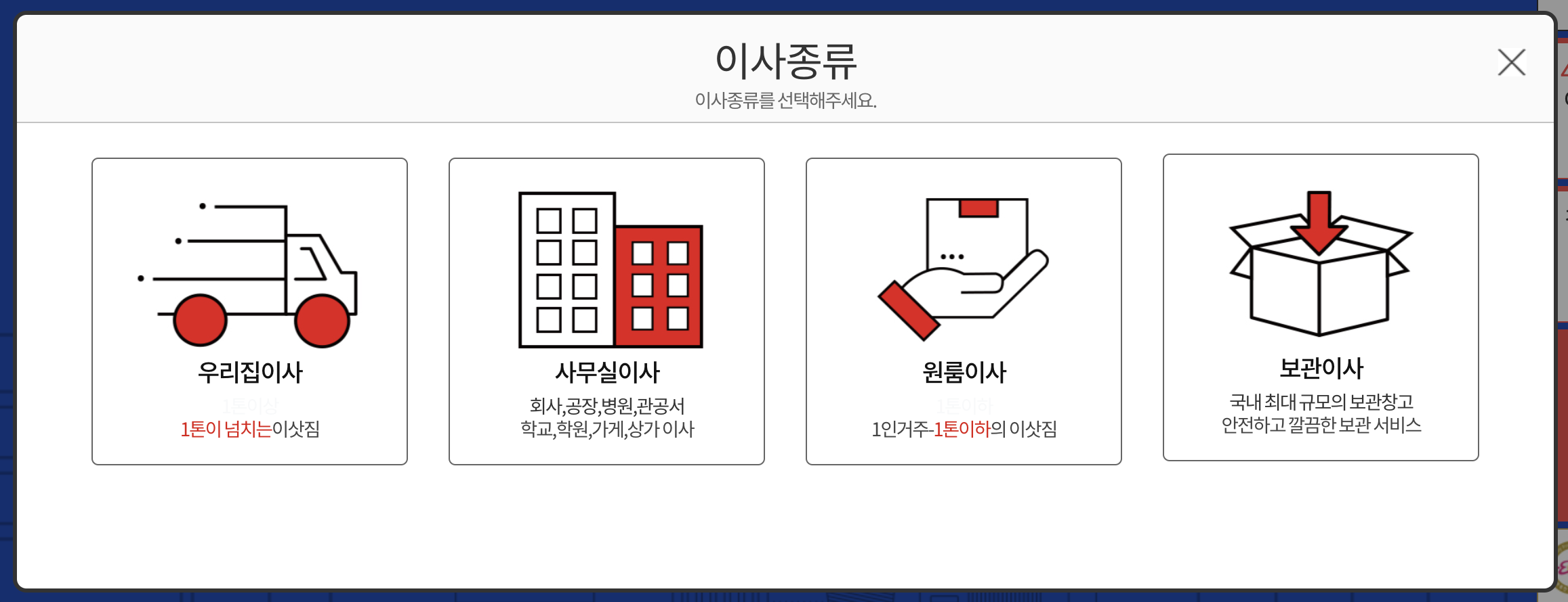 이사 준비로 고민이 많으신가요? 포장이사 견적비교 사이트를 이용해서 합리적인 비용안에서 이사하세요.