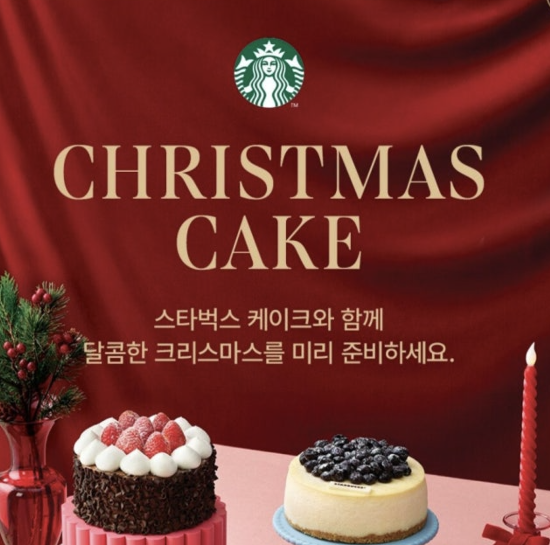 스타벅스는 온라인 예약과 앱 예약을 통해 크리스마스 케이크를 미리 주문할 수 있습니다.