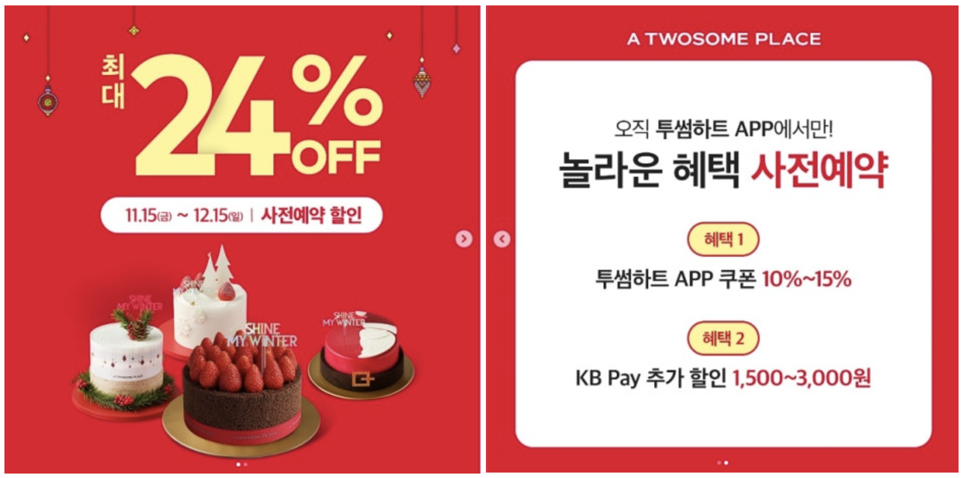 💡 팁: 예약은 미리 미리! 투썸플레이스의 인기 크리스마스 케이크는 빨리 매진될 수 있으니, 원하는 케이크를 확보하고 추가 혜택까지 챙기세요!