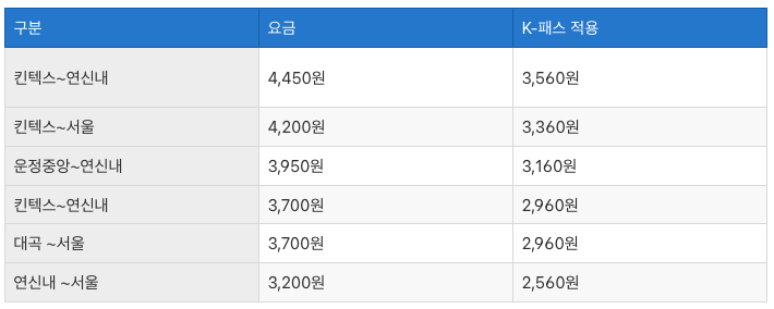 - 킨텍스역 → 서울역: 4,200원 (소요 시간 약 17분)