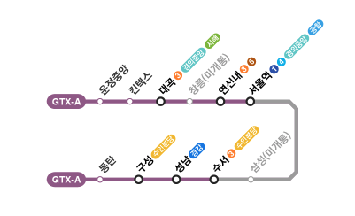 GTX-A 노선은 운정중앙역에서 서울역까지 빠르고 효율적으로 연결됩니다.