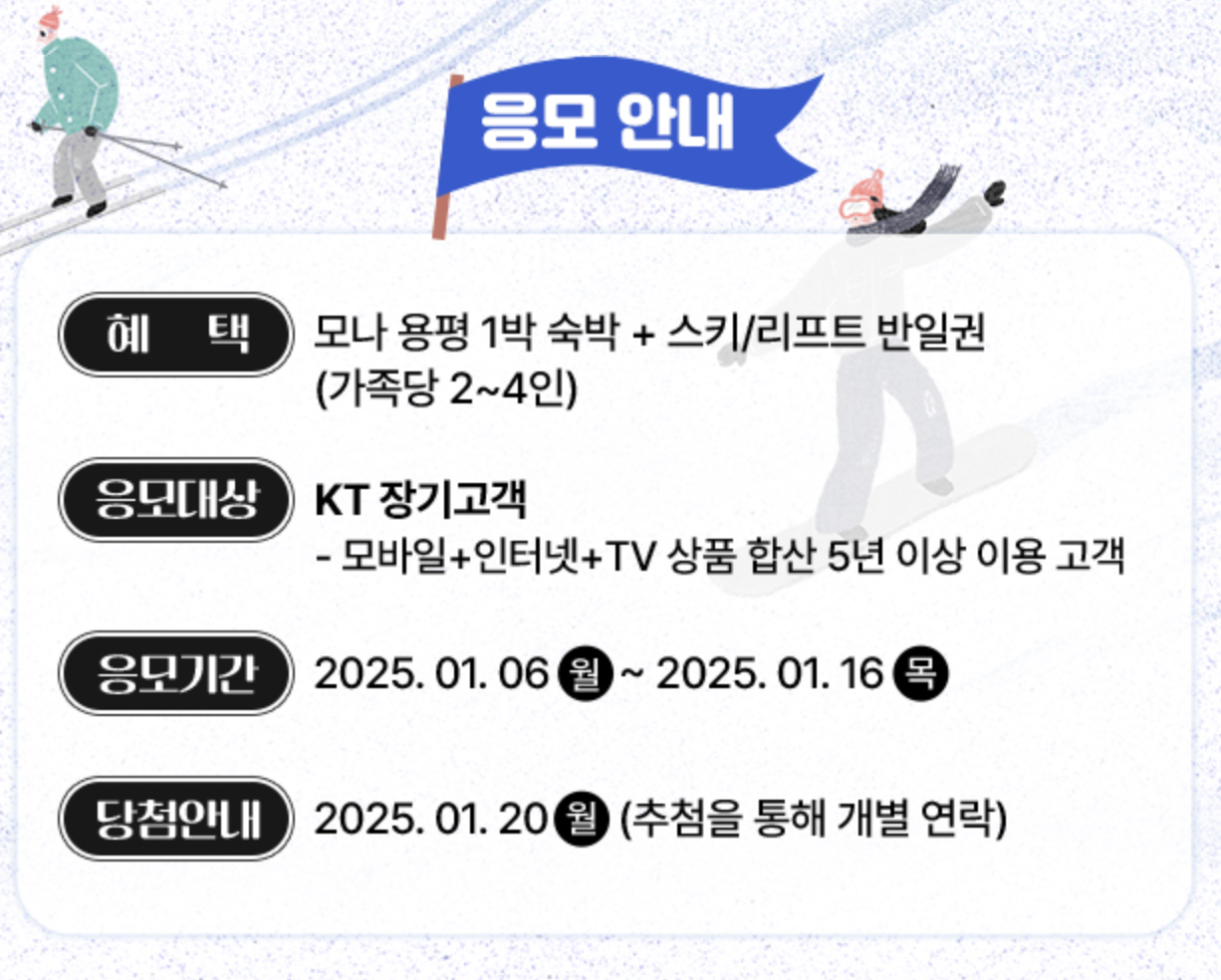 응모 기간이 짧은 편이니, 지금 바로 참여하여 모나 용평 숙박권, 스키장 리프트 혜택을 받으세요.